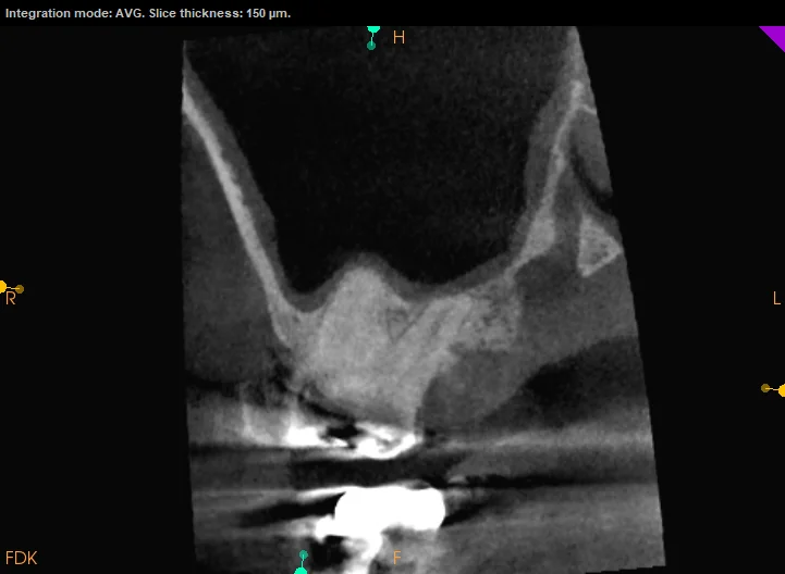 Identified potential endodontic issue; patient informed and reassured with a clear plan.